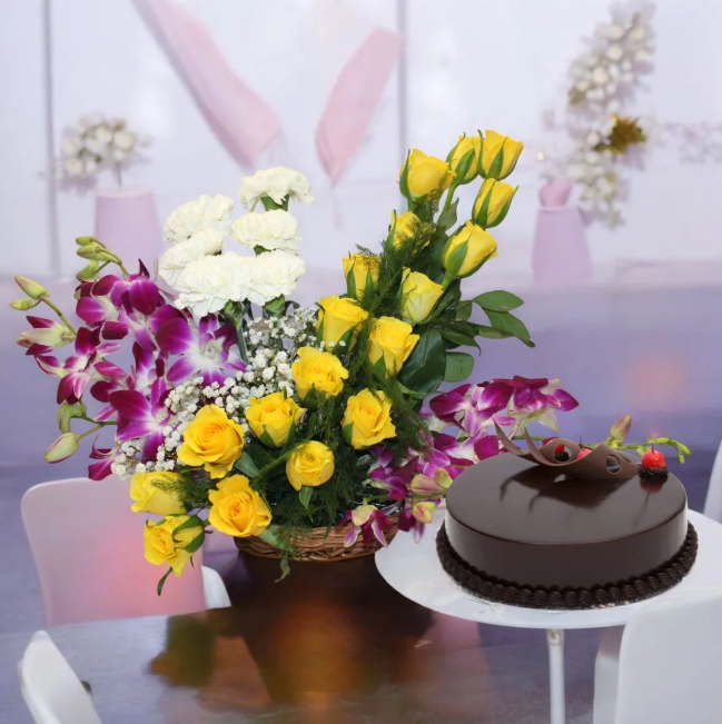 When it comes to expressing love, gratitude, and celebration, nothing can match the elegance of a Chocolate Truffle Cake paired with a Yellow Roses Flower