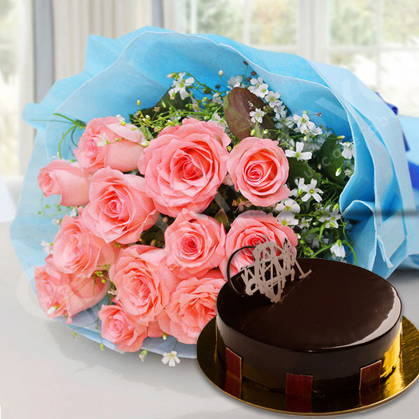 💐 Sendflowerindia brings you the perfect duo for every special moment — a gorgeous pink roses bouquet paired with a decadent chocolate truffle cake. Whether